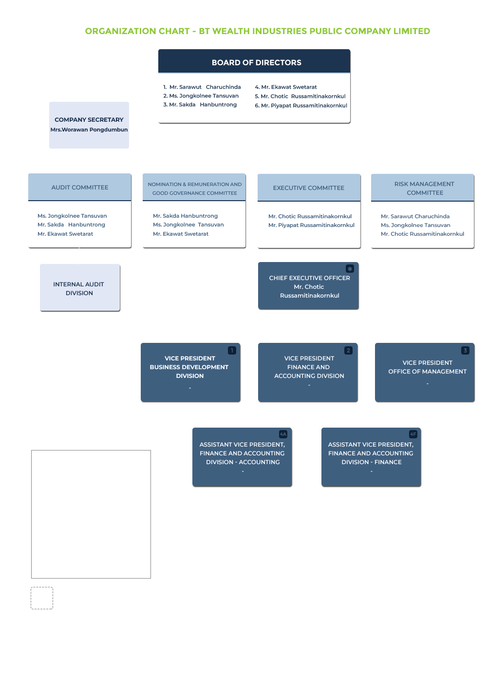 BT Wealth Industries Public Company Limited (“BTW”) wholly owns Best Tech & Engineering Ltd. (“BTE”), a major offshore steel fabricator in Thailand.